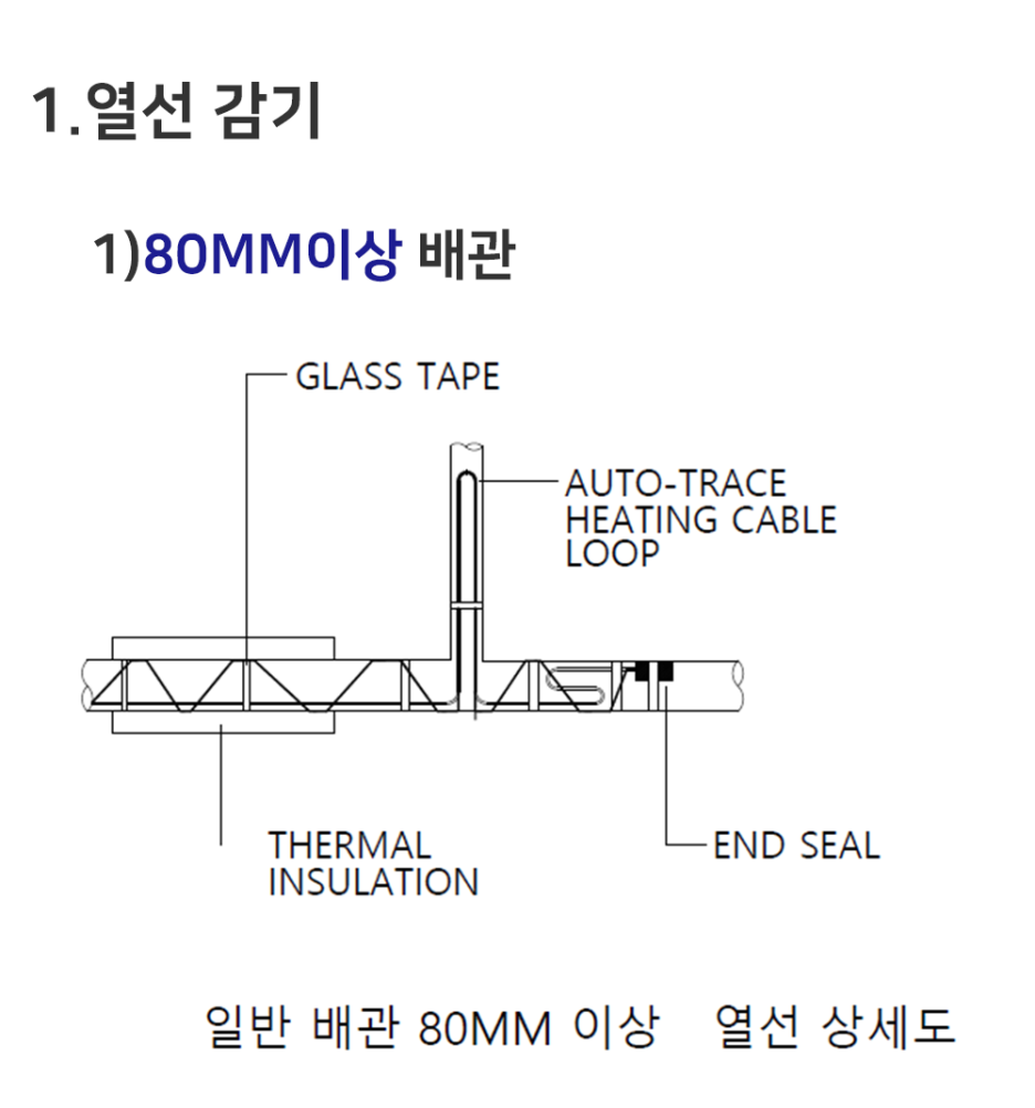 열선감기는 80MM 기준으로 감기 방식이 다르므로 아래 설명을 참고하여 시공하시길 바랍니다.