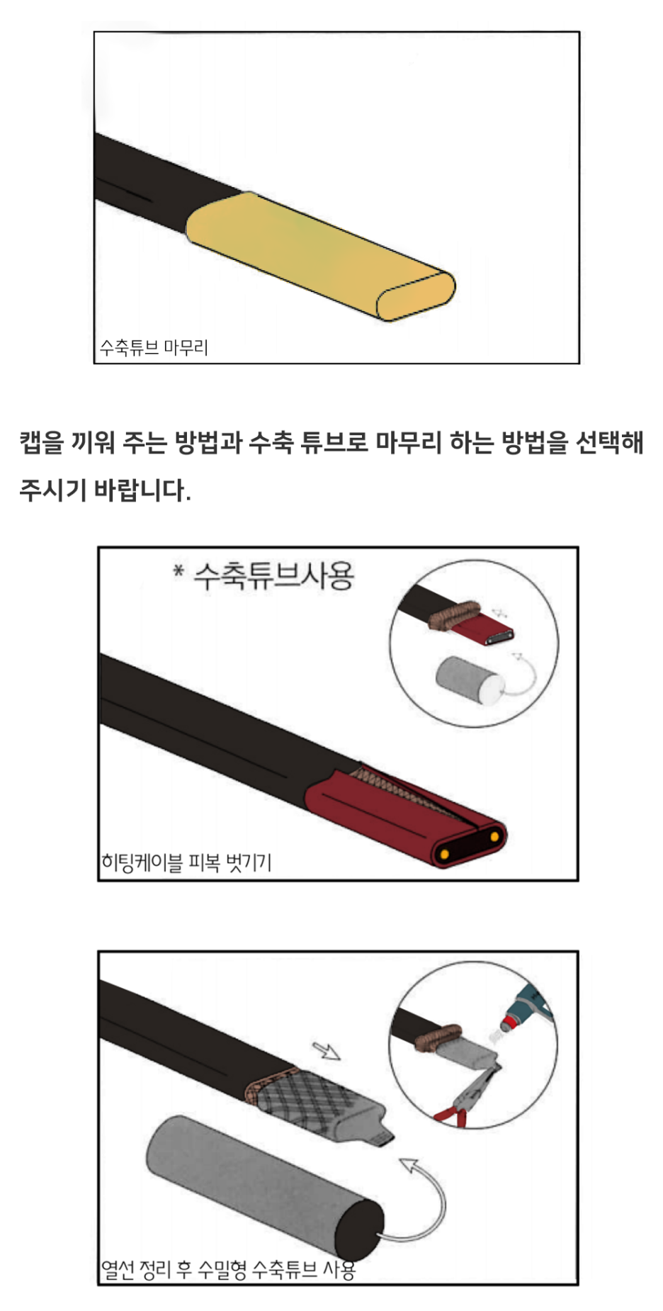 이제 마지막으로 히팅케이블 말단처리 방법입니다.
