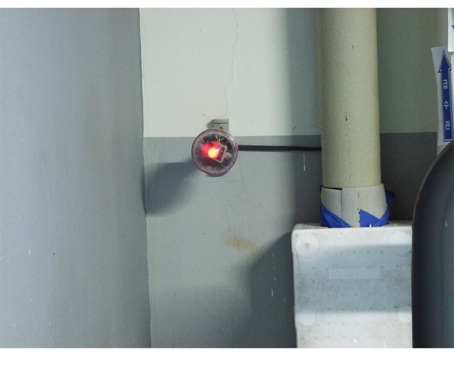 전원 배관 전선관에 고정하여 시공 전원 투입여부를 멀리서도 확인가능합니다.